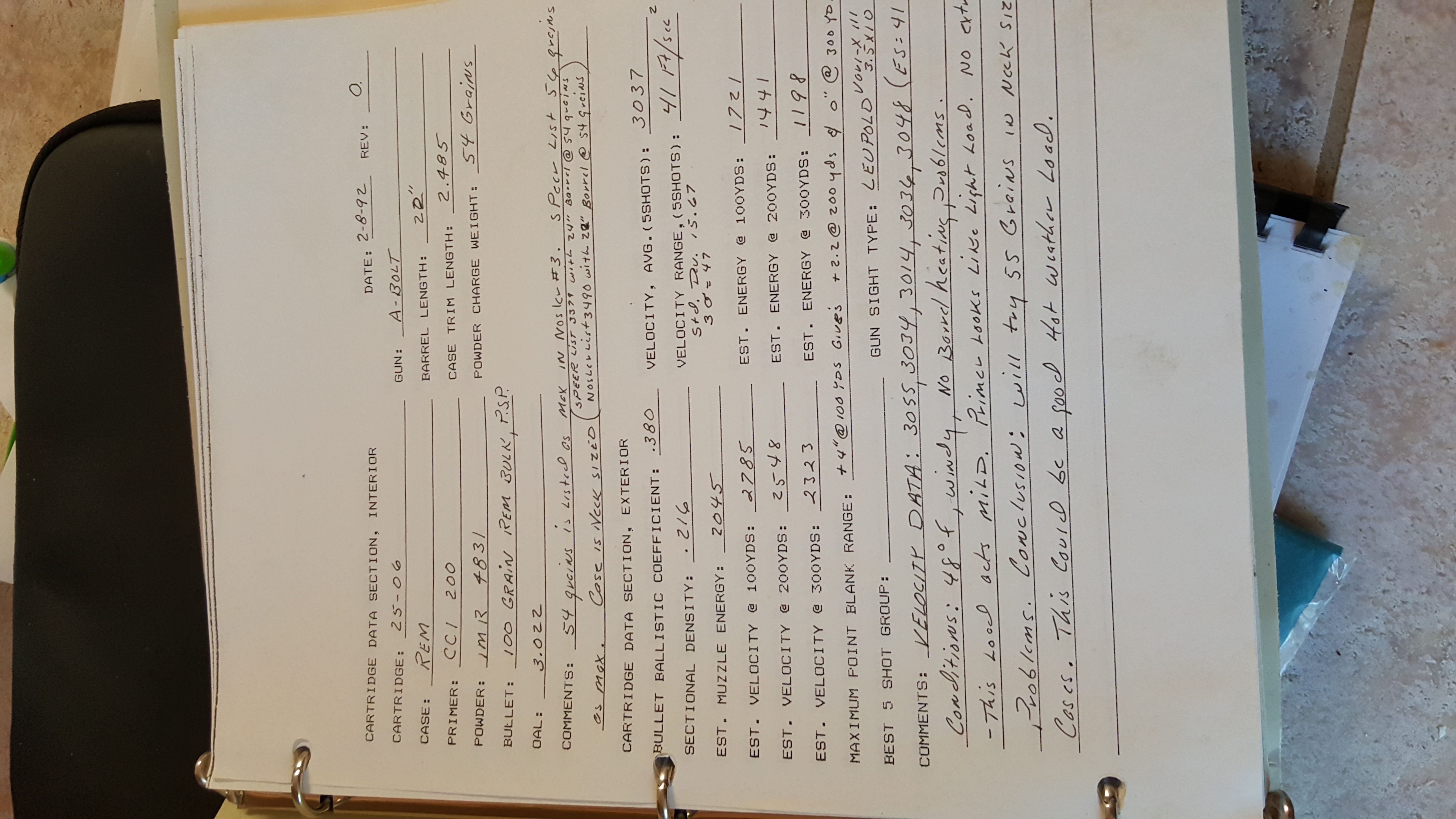 Sounds like a solid plan. Keep good notes. Many years ago I created a standard form for myself and made copies to create my own personal loading manual and keep a history of what I do at the loading bench. Here is an example:Jaker wrote:Thanks for the info my initial thoughts was that Henry's come wIth a fairly slow twist I can't remember the exact twist at the moment, so I considered lower weight buts with higher velocity, although often times heavier bullets perform well at longer ranges....my girlfriend works at a sporting goods store and gets a hefty discounteldermike wrote:Way back when I was shooting International Metalic Silhoutte I used a 357mag barrel 14 inch in my Thompson Contender. I could not stabilize the 125 grain bullets and found the 180 grain to be best for accuracy. The problem I then ran into was limited case volume based upon seating the 180's at a depth that would allow the gun to close and lock. I was running 100% loading density and still not making the listed velocity for the load. I fixed that by reaming out the chamber and seating the bullet very shallow.