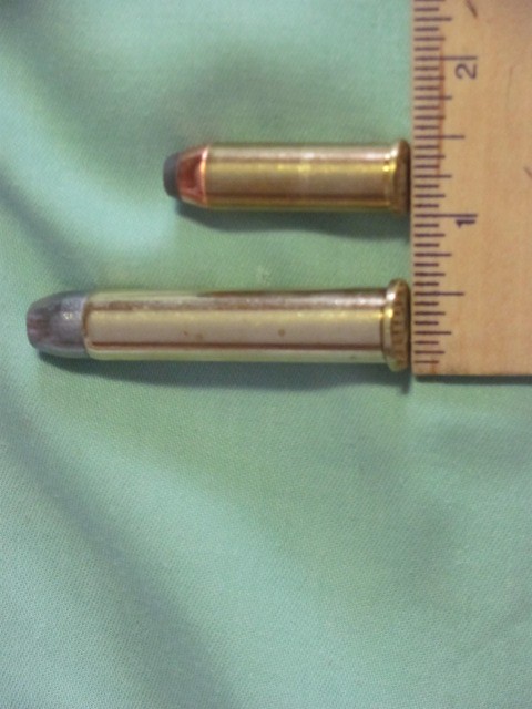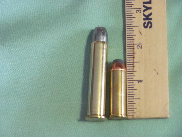 below can be seen 44 Mag and 45-70 cartridges .... the 45-70 is considerably longer and a tiny bit wider .... with a 300 grain bullet the max recommended load for :