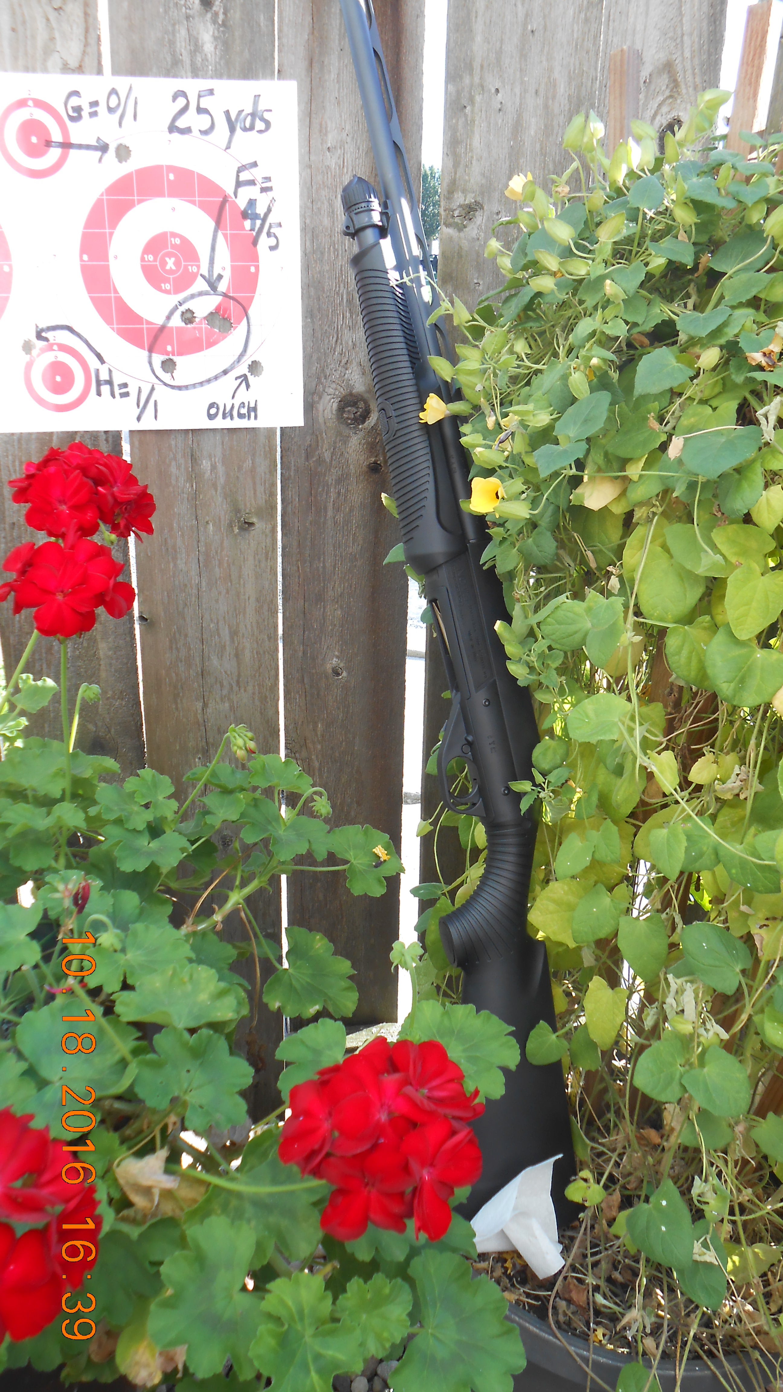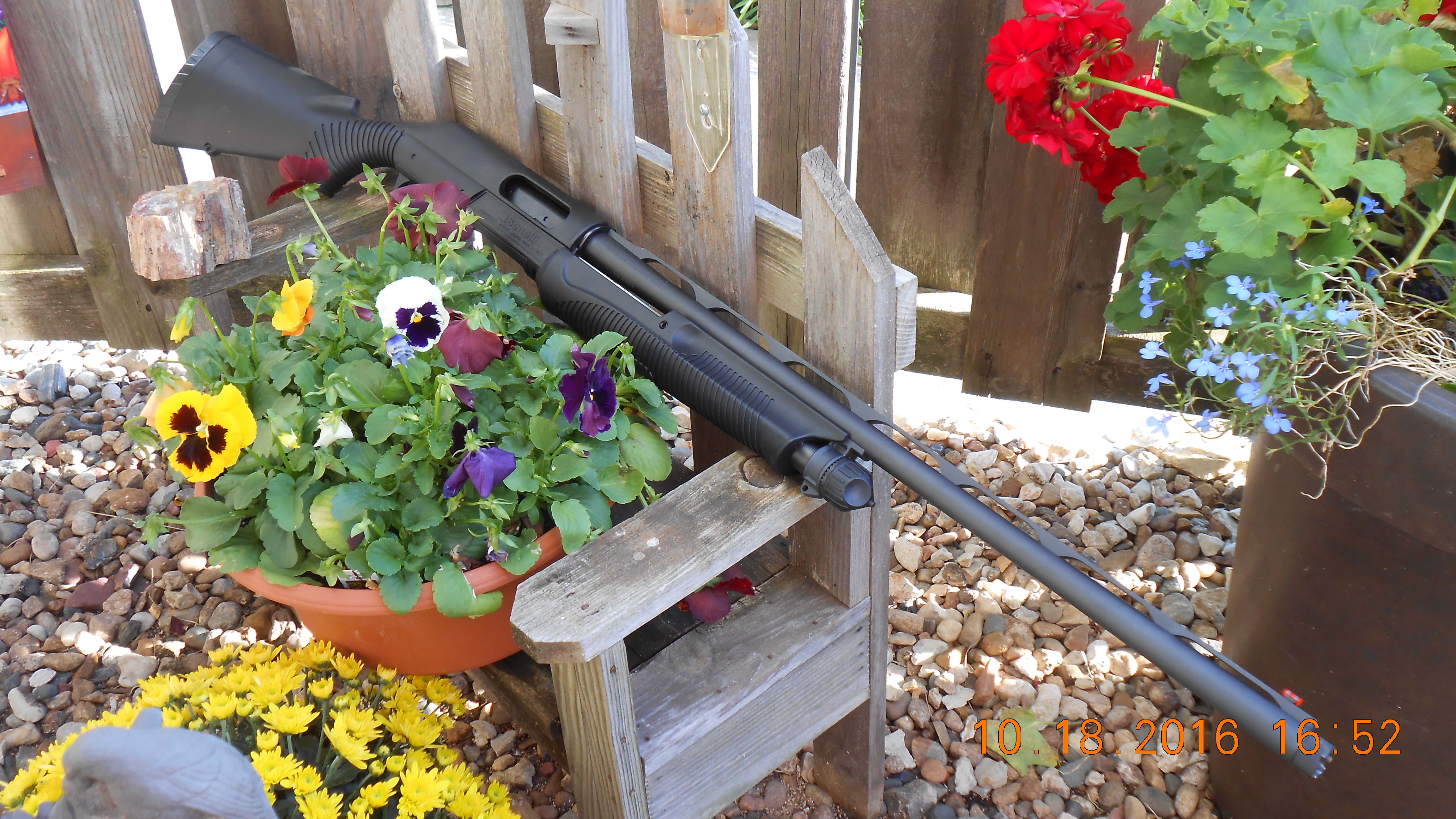 Here are a few pictures of my shotgun, at rest in our patio garden. [Click on photo for larger view}