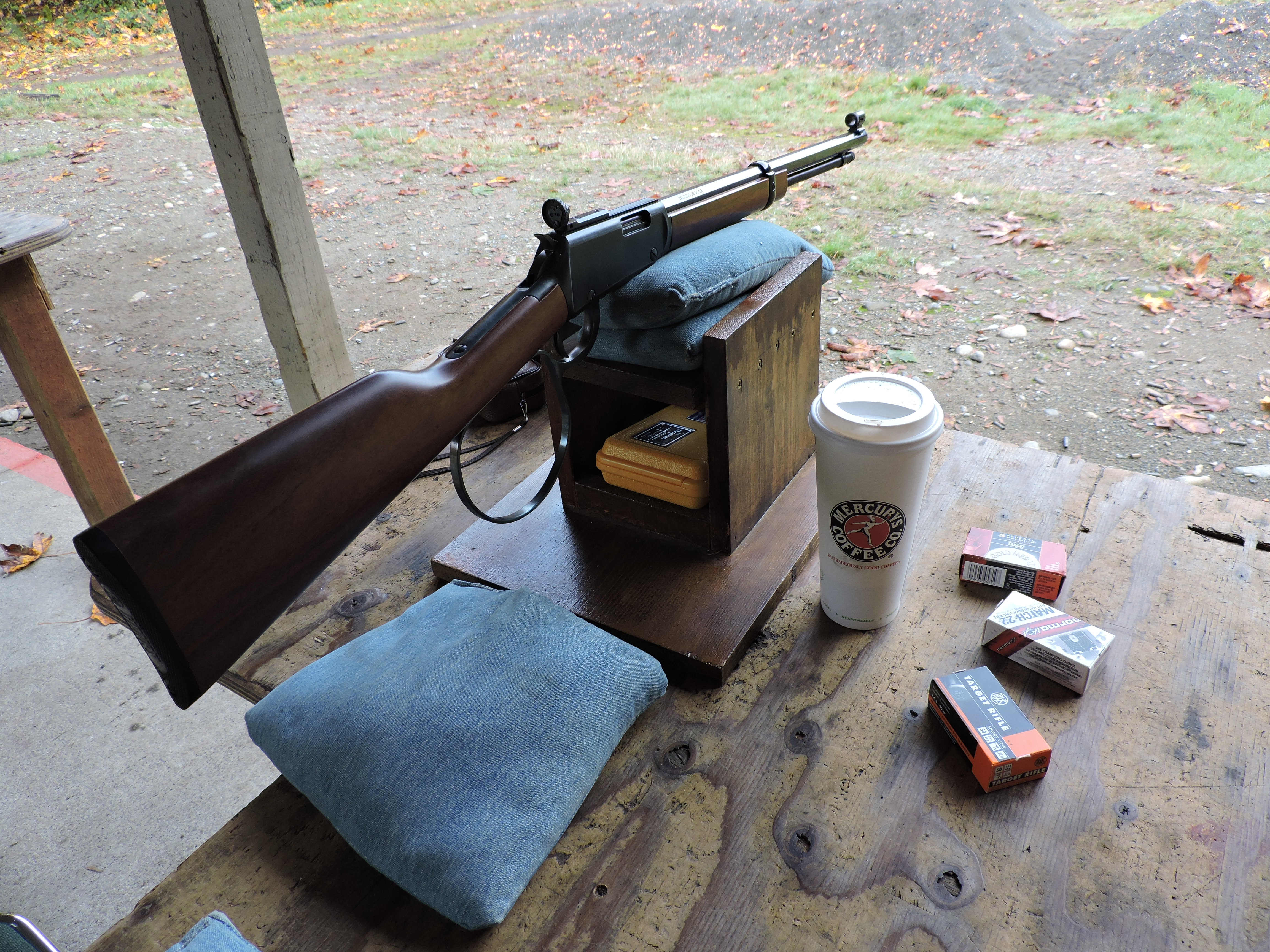 I had a good day at the range. Good but not spectacular. I shot this Small Game Carbine in .22LR. The rear sight base is a Skinner but the peep is a three-hole Stevens. The front sight is a Lyman globe. It of course has a custom large loop and the buttstock is from a youth rifle. Click on the picture and you will see the full beauty.