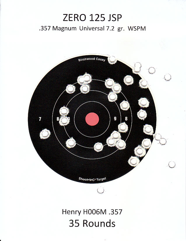 I got to my indoor range today, shooting .357 handloads in both the revolver (25 ft.) and the Henry Big Boy (75'). I shoot standing, off hand. I had a fun hour of shooting and it's not all that bad; it's just not great shooting. I know I have work to do.