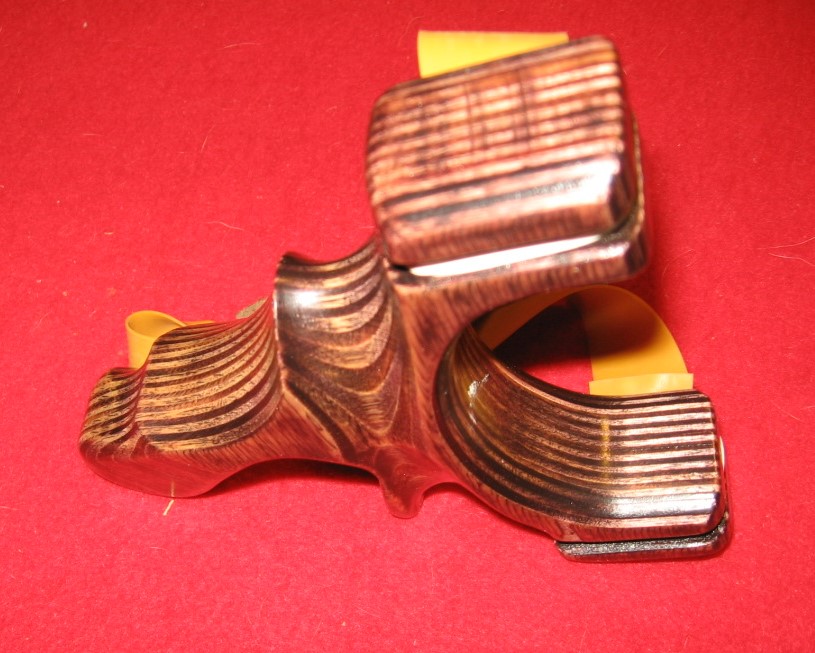 I will shoot it tomorrow if the paint should be hard by then . This is twice as thick as #1 and #2 because this 2 piece of plywood glued together .This has a palm swell and should force me to grip it 1 way and 1 way only . Now I will see if it shoot better then #2 .