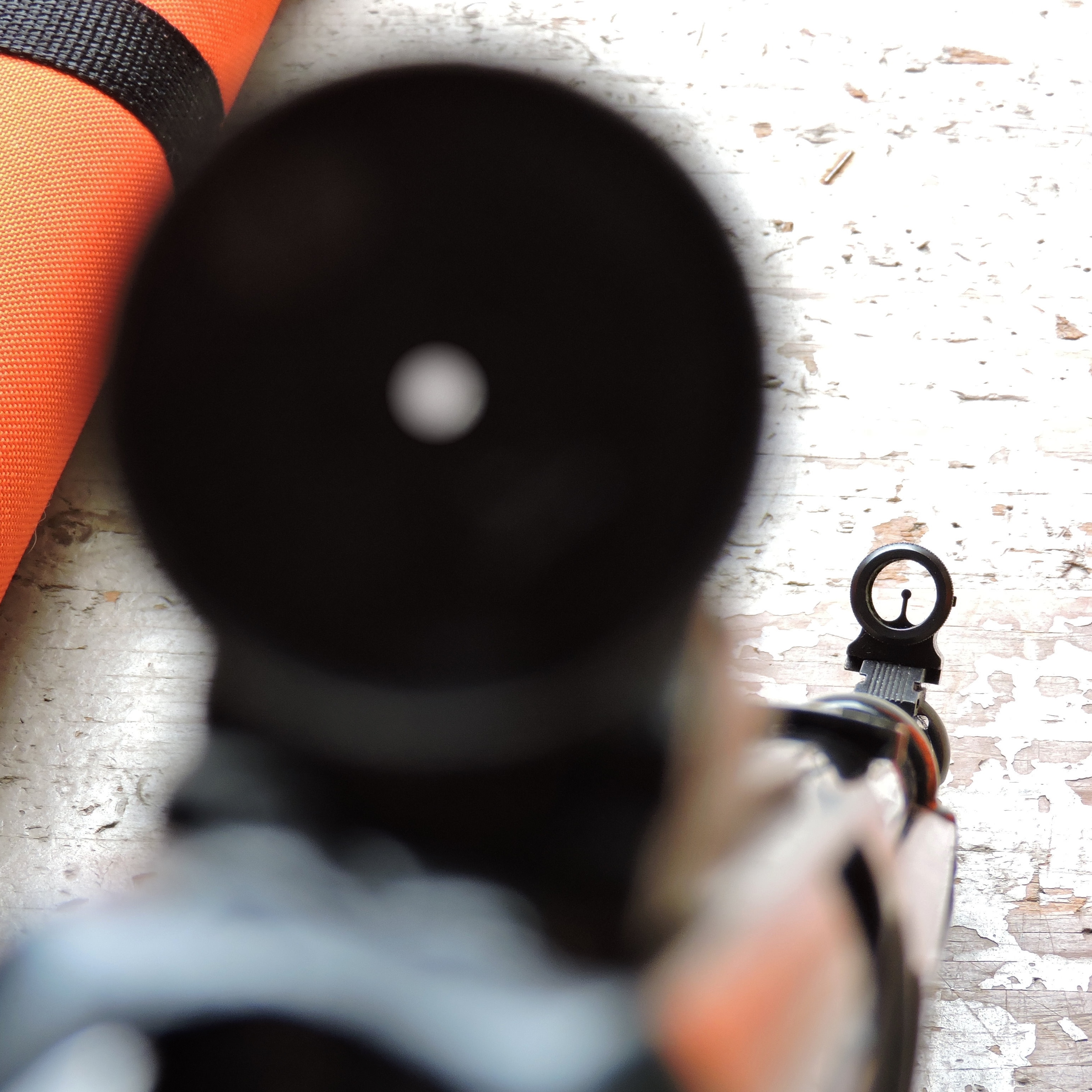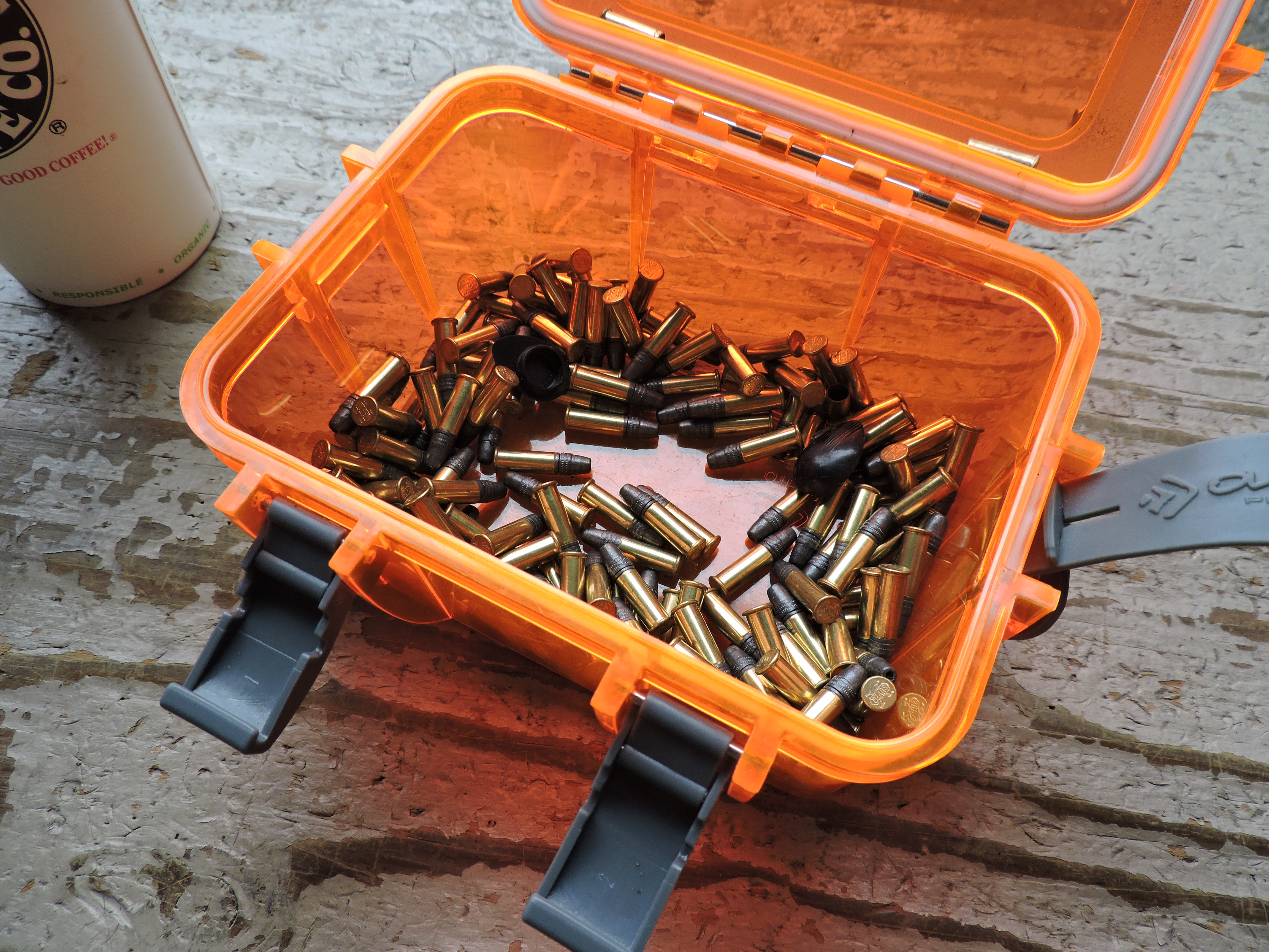 Didn't even take targets with me. Just the Mare's Leg, some ammo, and my cup of joe. I started by shooting at shotgun shells at 10 yards. I have a Stevens No 105 three hole peep on the receiver and a Lyman Globe up front. Skinner modified the front barrel band/hanger to accept a standard dove. Oh, I just remembered my excuse. I needed this container for something else and had bulk Winchester ammo in it. Didn't know where to put it so decided I should just shoot it. Don't you love it when you accomplish a goal?