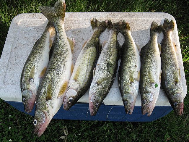 walleye fishing on Lake Albert in South Dakota .... we put the boat in just after 2:00 pm fished for about 4 hours ... pictured below are the 7 walleye we brought back ... the limit is 4 per person per day .... we caught and threw back a good dozen small ones and lost three that were as large or larger than the biggest in the picture below .... it is amazing how tired I can get after spending a few hours on the water .... all in all, a very nice day in the neighborhood ..
