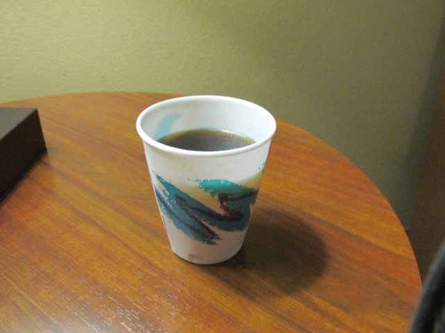 motel in-room coffee this morning .... it will take a dozen of these cups to equal a mug ..